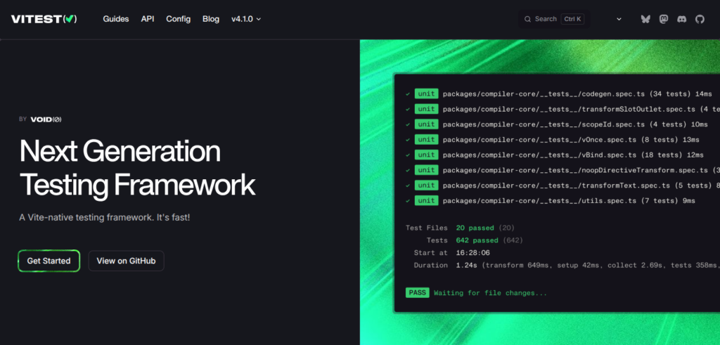 Vitest 4.1 suit le mouvement avec le support natif de Vite 8 et des fonctionnalités pensées pour les gros projets.
